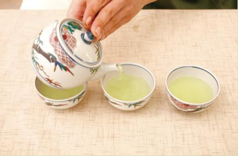 Häll teet i kopparna, lite i taget, så att alla får samma styrka och smak. Servera den sista droppen från tekannan.